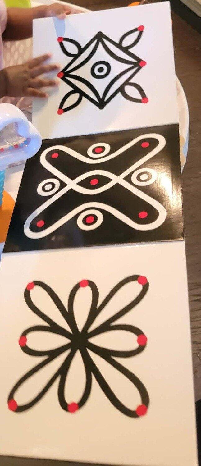 My 5 month daughter uses this book daily during tummy time and my 3 yo son points out red dots to her and counts how many there are. He just started tracing the designs with his fingers and I make sure it’s always in the diaper go before we leave the house! Can’t wait to gift this to my friends who’ll have babies soon!